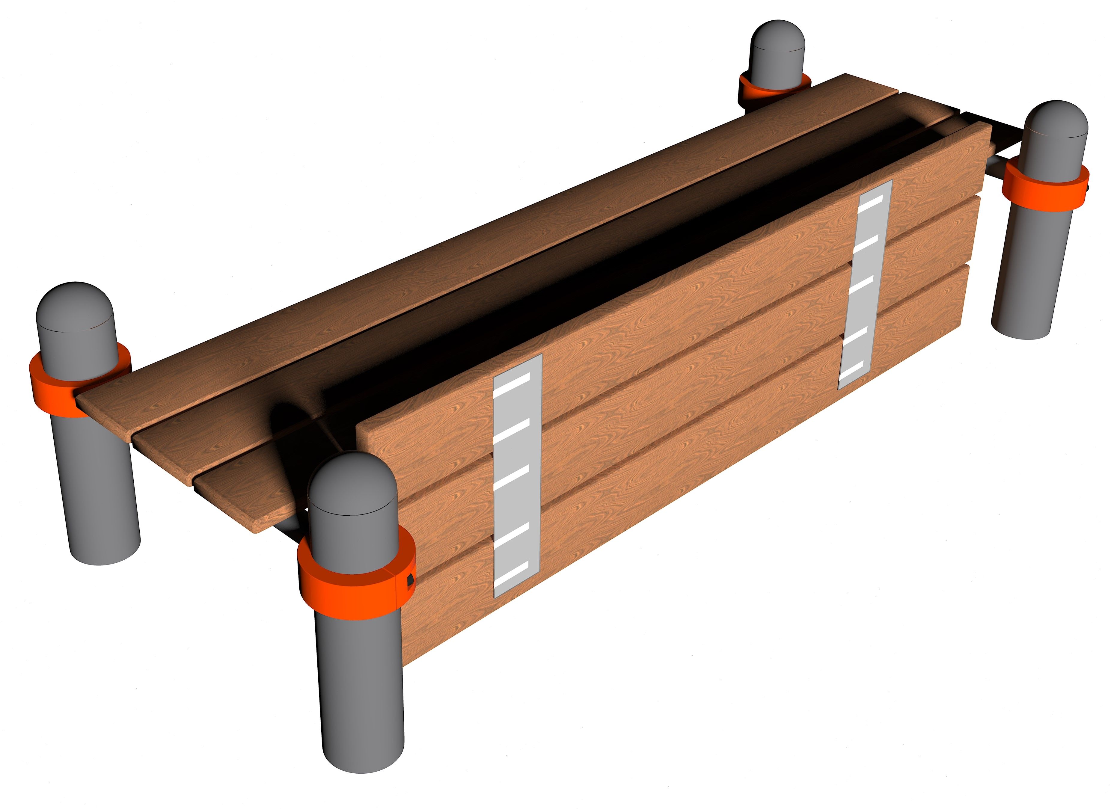 Горизонтальная гимнастическая скамья, к которой прикреплены антивандальные измерительные линейки с диапазоном измерения от «+35» до «-10 см» для выполнения испытания «Наклон вперед из положения стоя на гимнастической скамье»