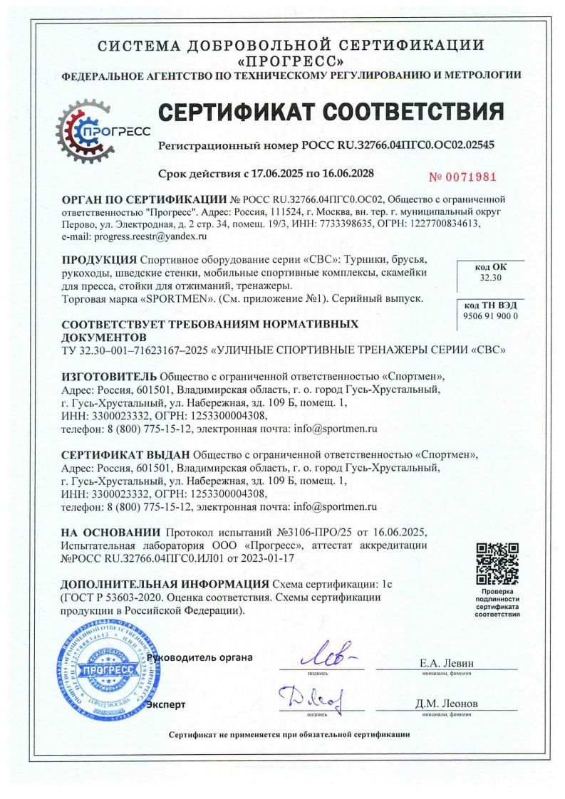 За 12 лет работы, компания SPORTMEN выпустила более 38 000 уличных тренажёров и оснастила более 3000 спортивных площадок. Вся наша продукция предварительно оценивалась на качество сборки и надежность. Также её постоянно тестировали профессиональные спортсмены и спортивные эксперты, за счёт чего нам удалось достичь превосходных результатов при производстве нашего оборудования.
