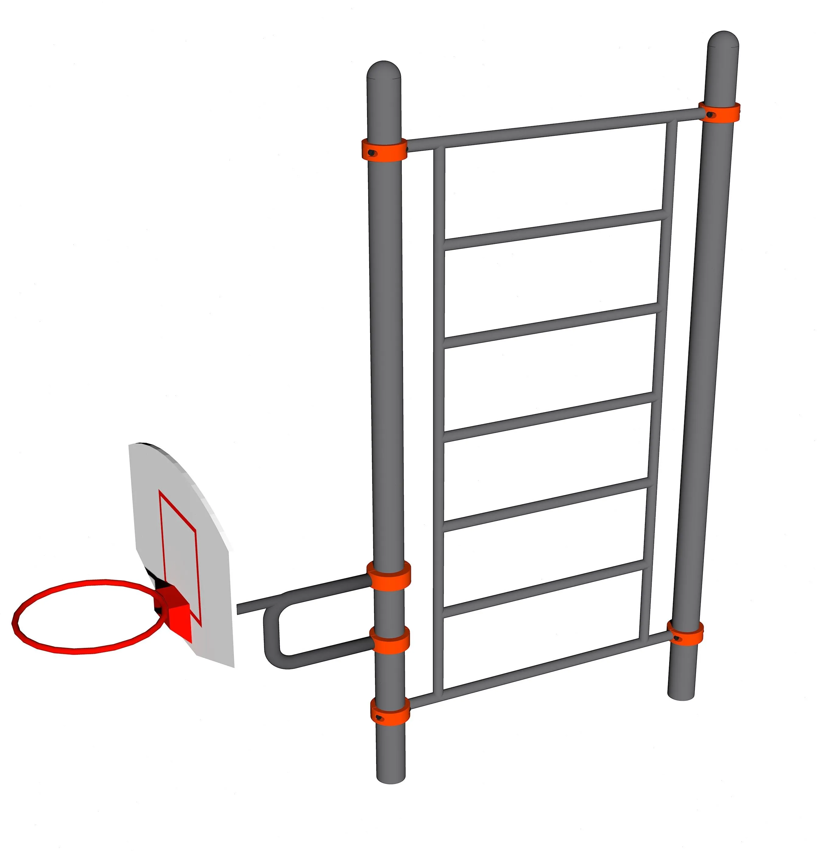Гимнастический снаряд «Шведская стенка», оснащённый баскетбольным кольцом с сеткой диаметром 18 дюймов (46см), с дополнительным съёмным приспособлением, позволяющим фиксировать его на снаряде для выполнения испытания «Бросок теннисного мяча в корзину на полу» инвалидами и лицами с ограниченными возможностями здоровья