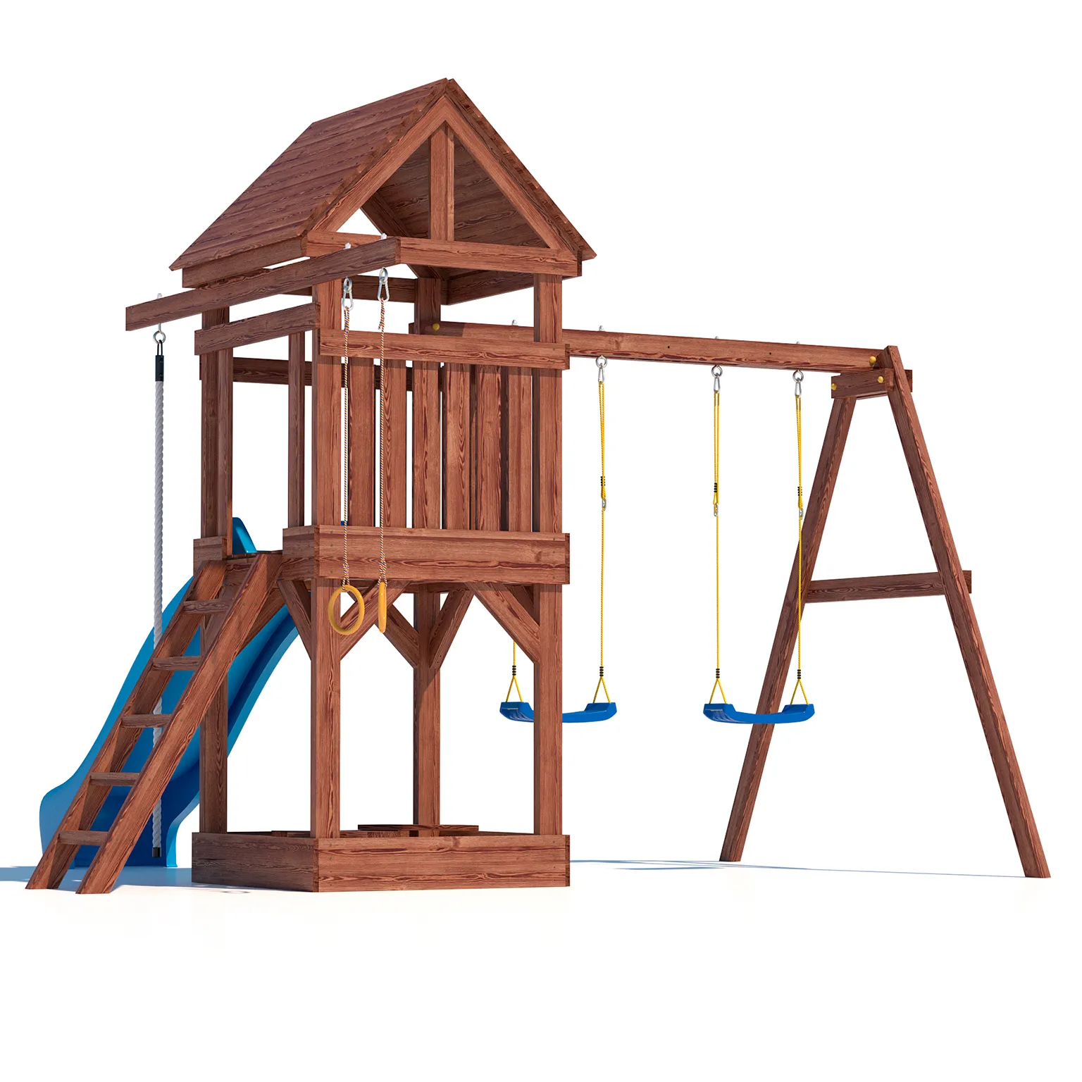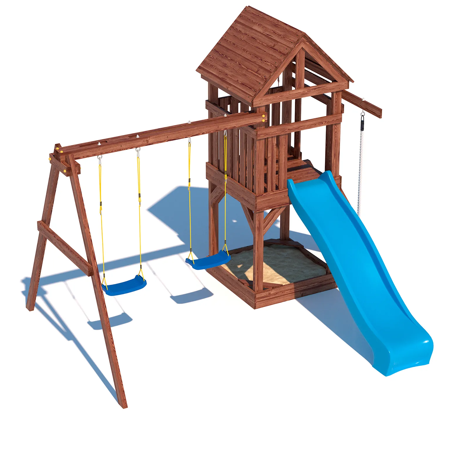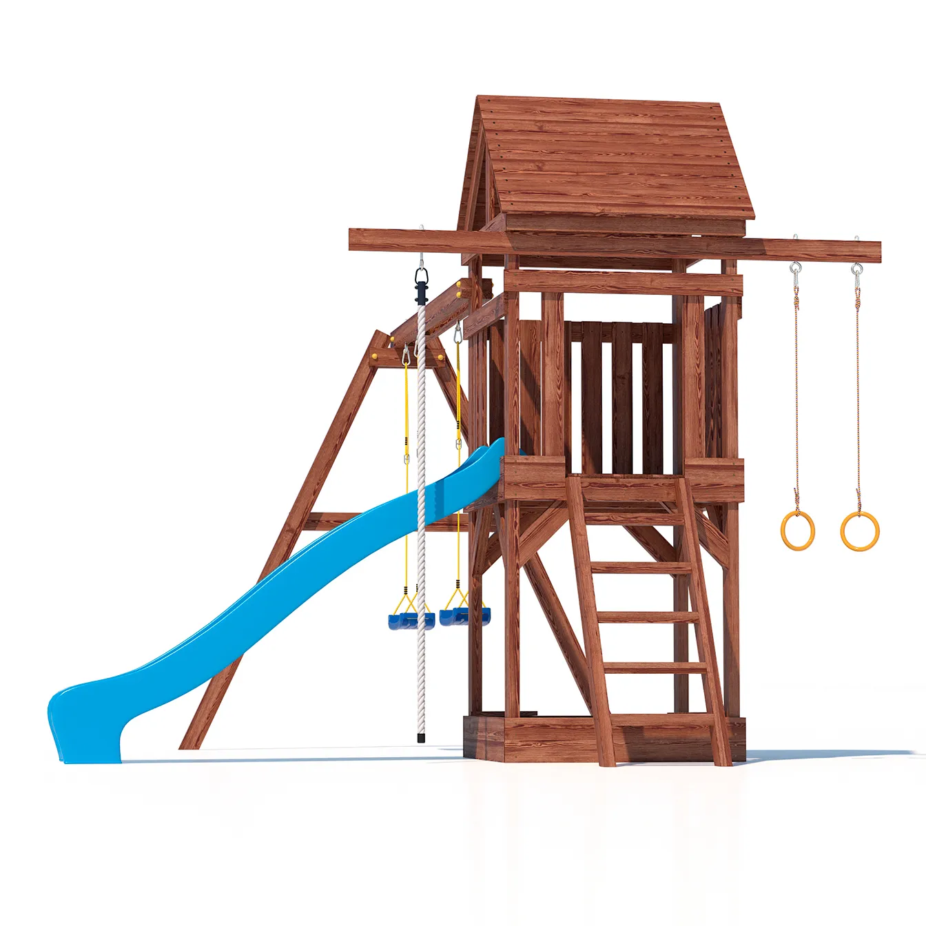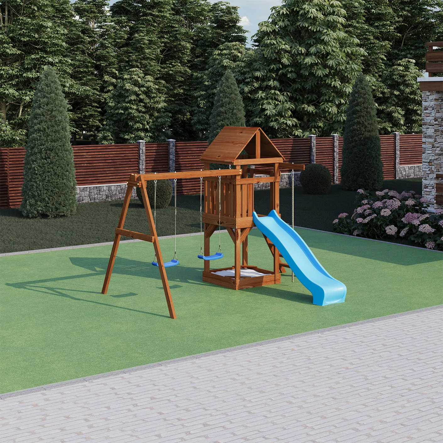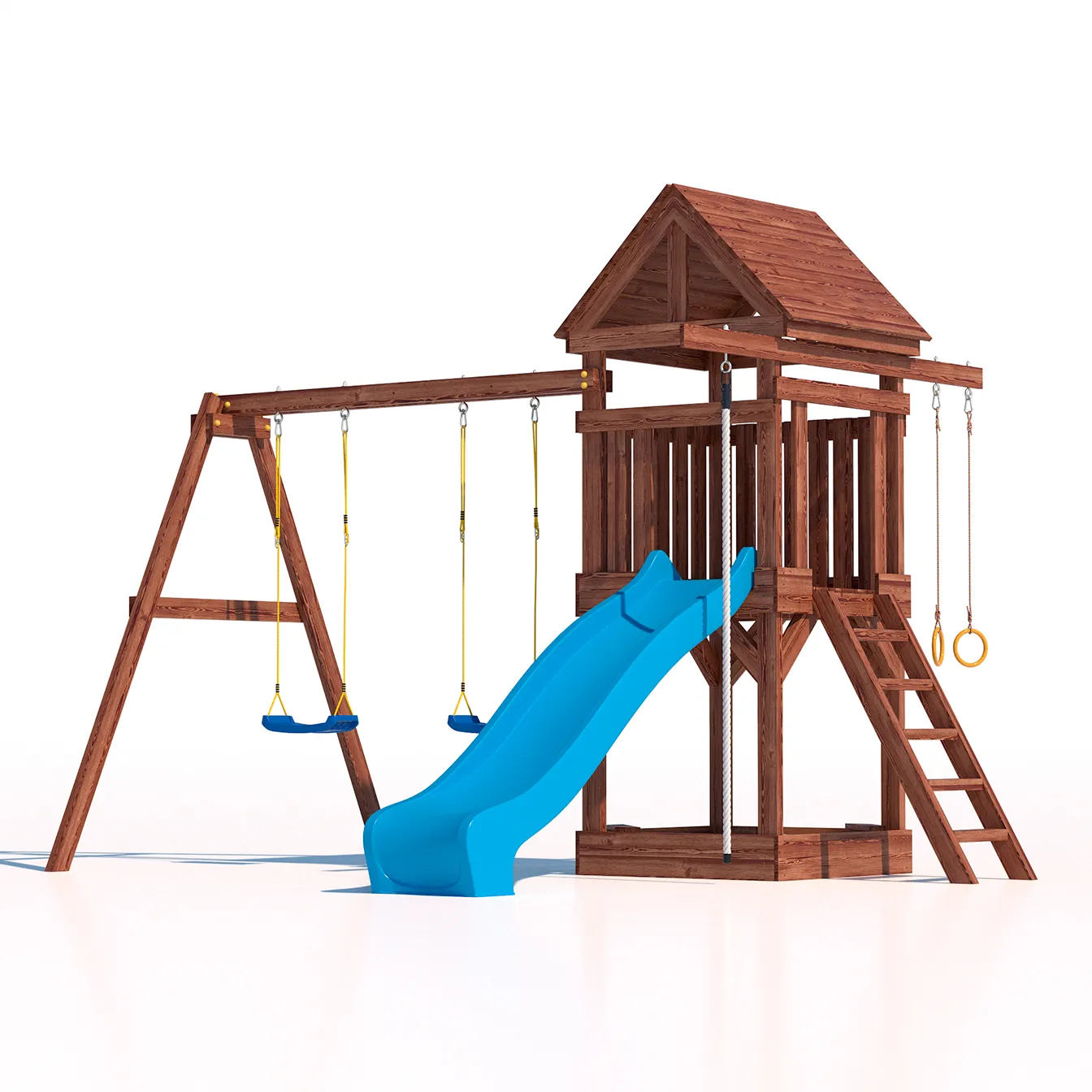 Понятная и логичная инструкция позволит без труда самостоятельно осуществить сборку. Серия площадок Scout не имеет отверстий для фурнитуры. В комплект входит шаблон для формирования отверстий. Болты поставляются в комплекте.