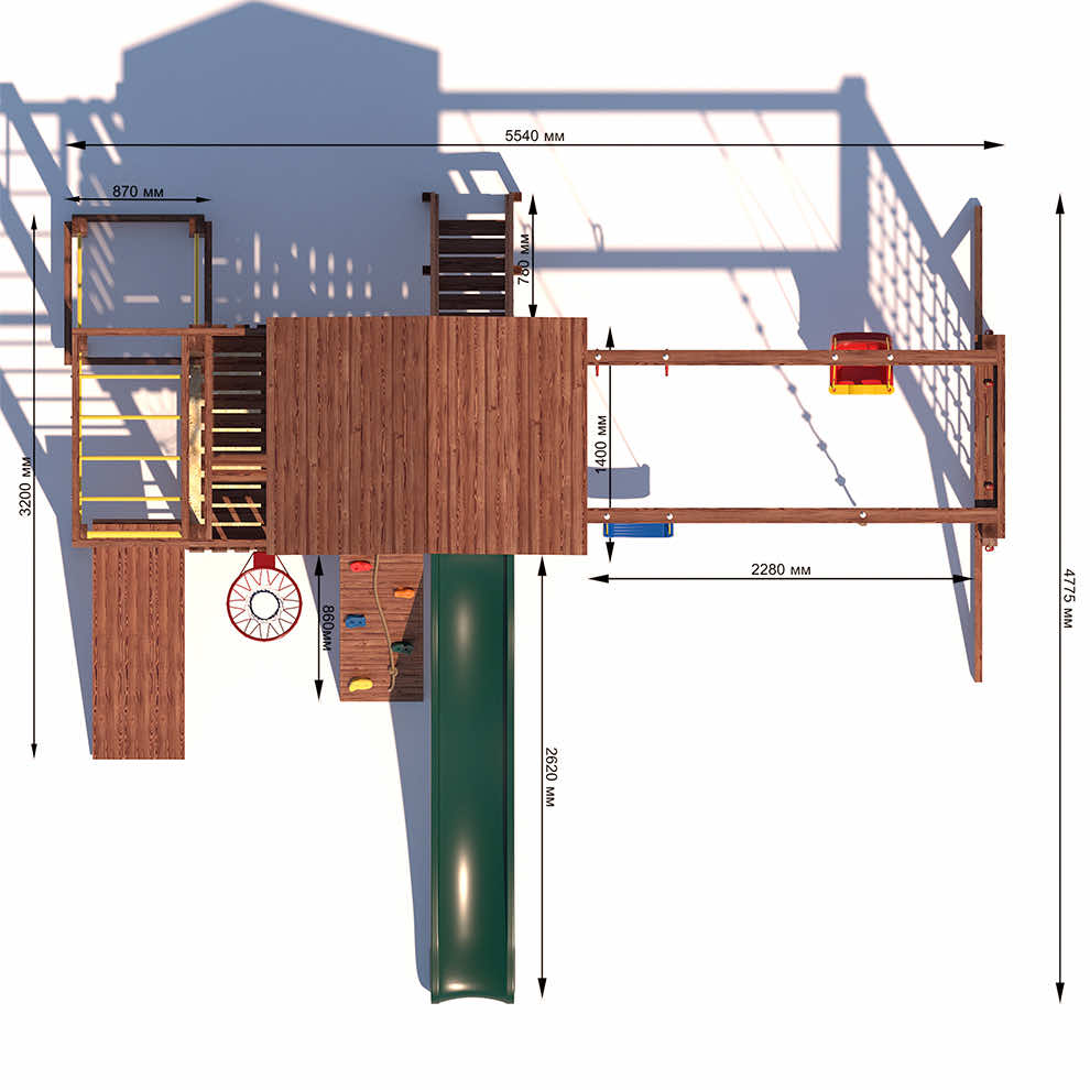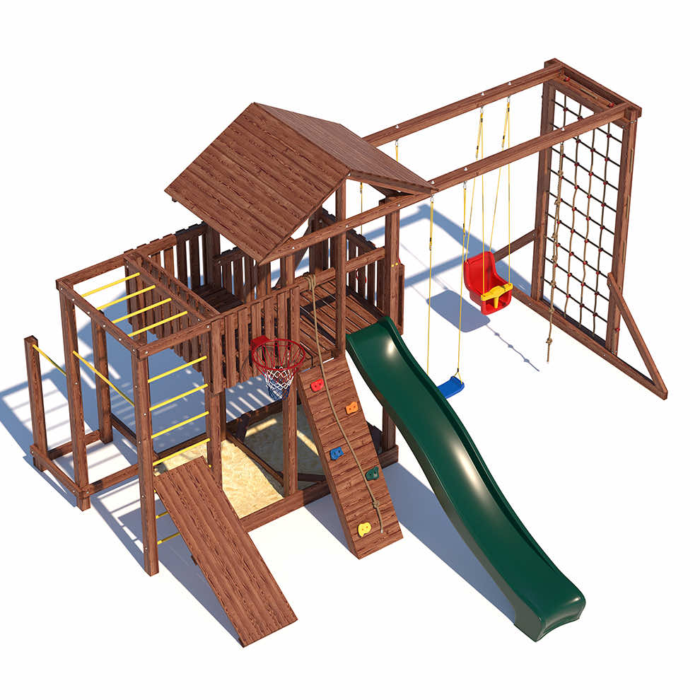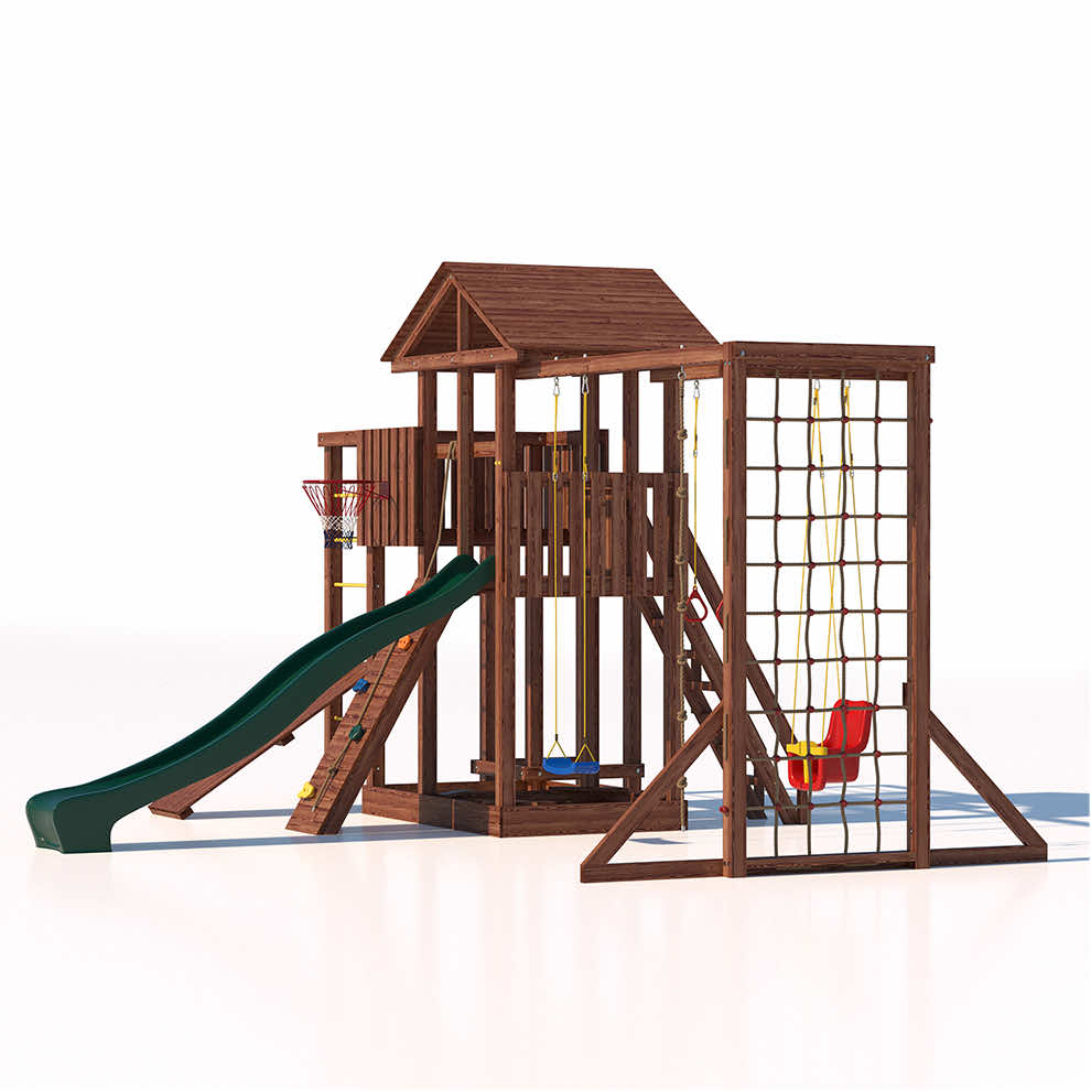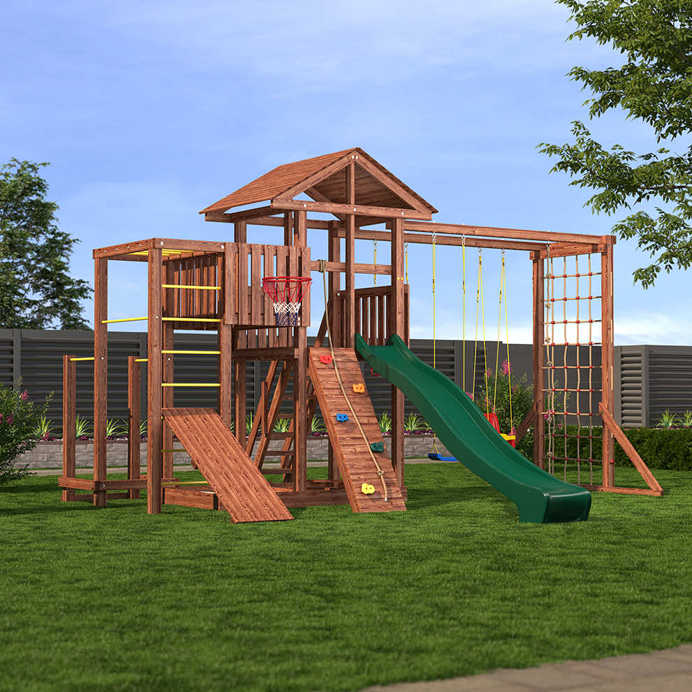 Комплексы серии Active созданы для активного отдыха Вашего ребенка с упором на спортивные элементы, разработаны и изготовлены на платформе высотой 1,5м., элементы несущей конструкции выполнены из высококачественного клееного бруса 90х90мм. Данная модель закроет потребности в спорте и отдыхе для разных категорий ребят. Малышам придутся по душе удобные качельки со спинкой , песочница с сиденьями, большая сетка -лазалка. Площадка оборудована удобными широкими ступеньками и перилами для безопасности. Ребятам постарше будет интересно на турнике и брусьях, рукоходе, а на специальной скамье для пресса можно запросто устроить настоящие спортивные соревнования.