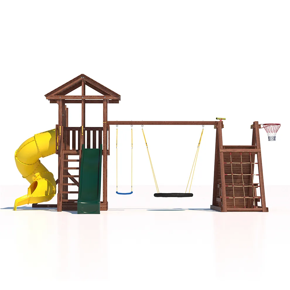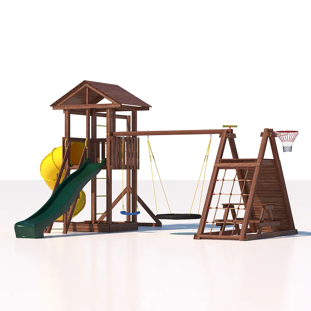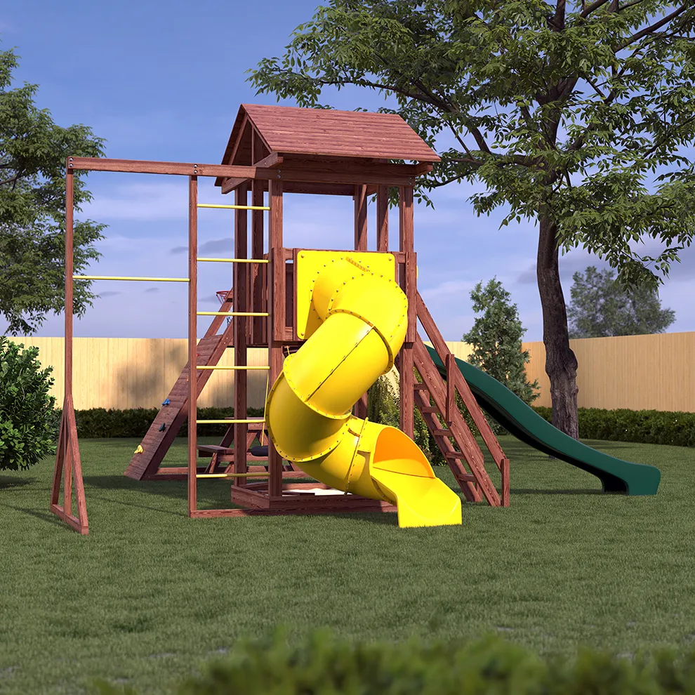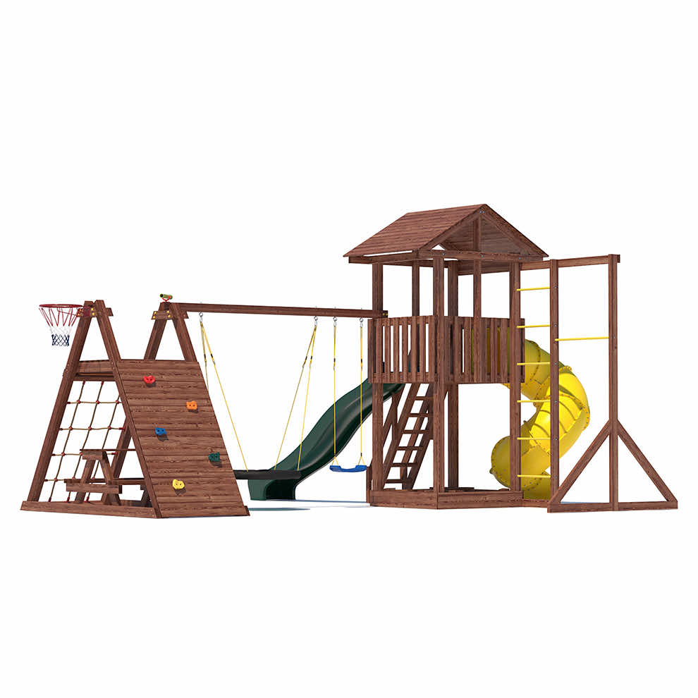 Комплексы серии Active созданы для активного отдыха Вашего ребенка с упором на спортивные элементы, разработаны и изготовлены на платформе высотой 1,5м., элементы несущей конструкции выполнены из высококачественного клееного бруса 90х90мм. Данная модель игрового комплекса оборудована большой винтовой горкой, которая будет центром всеобщего детского притяжения, потому что спуск с нее это сплошная радость и веселье!