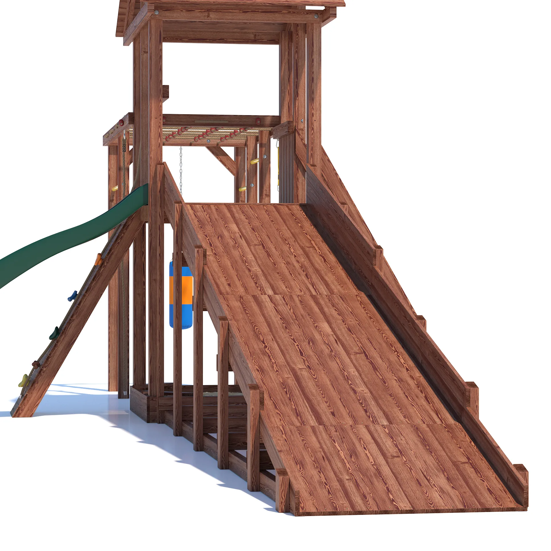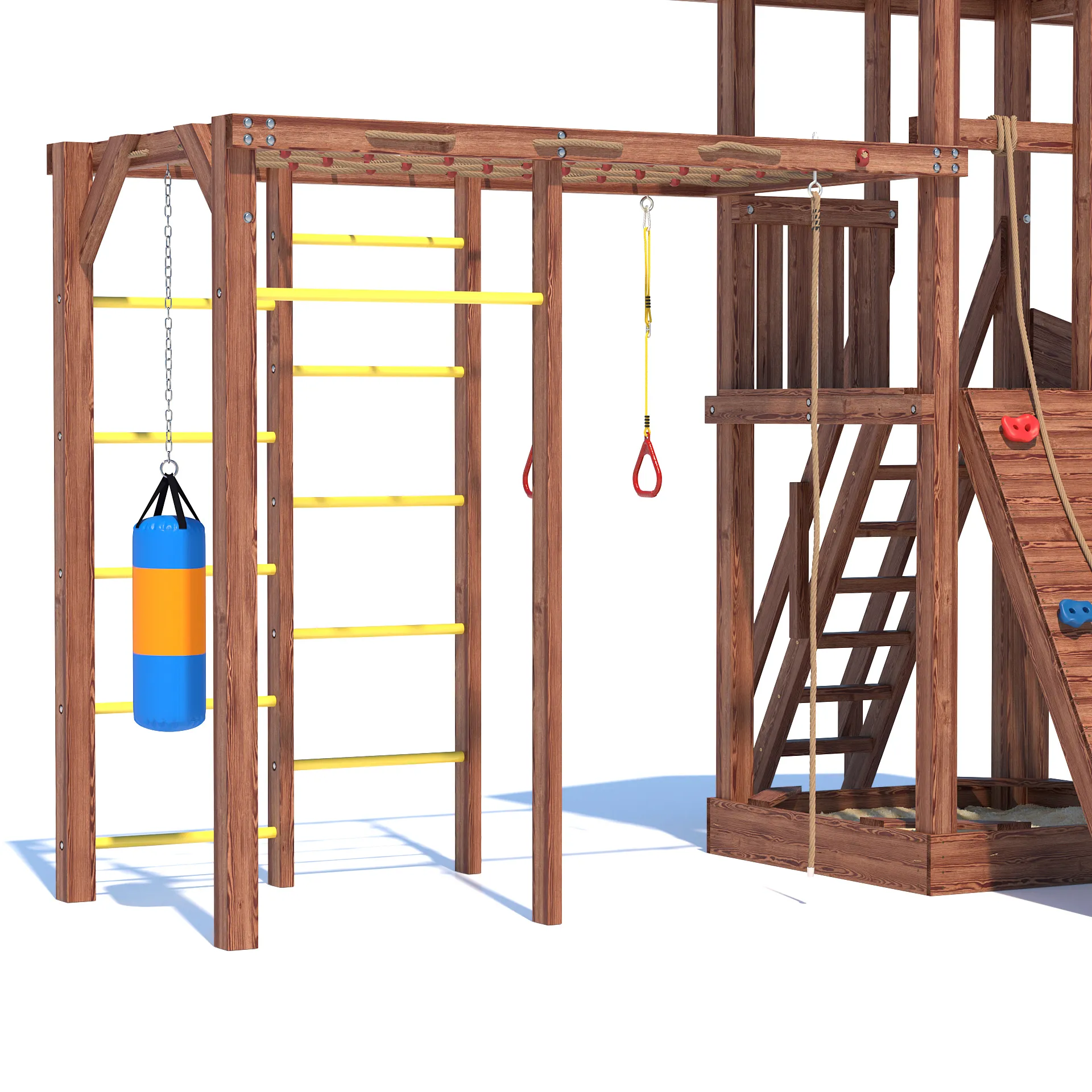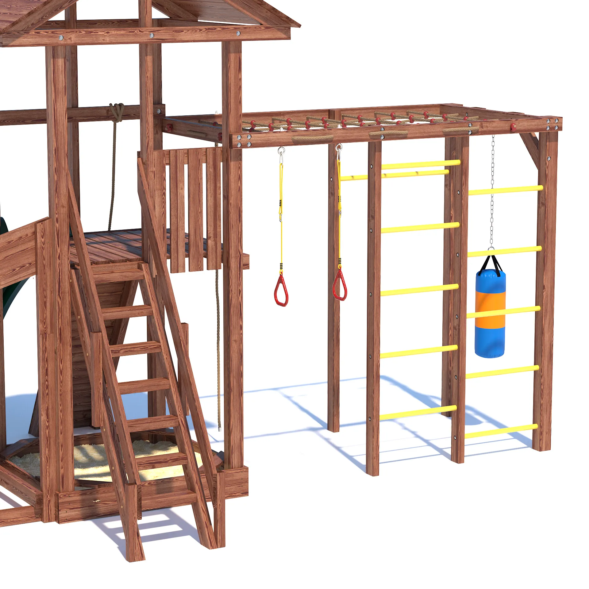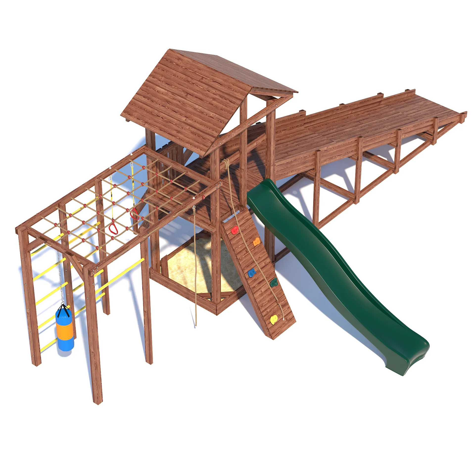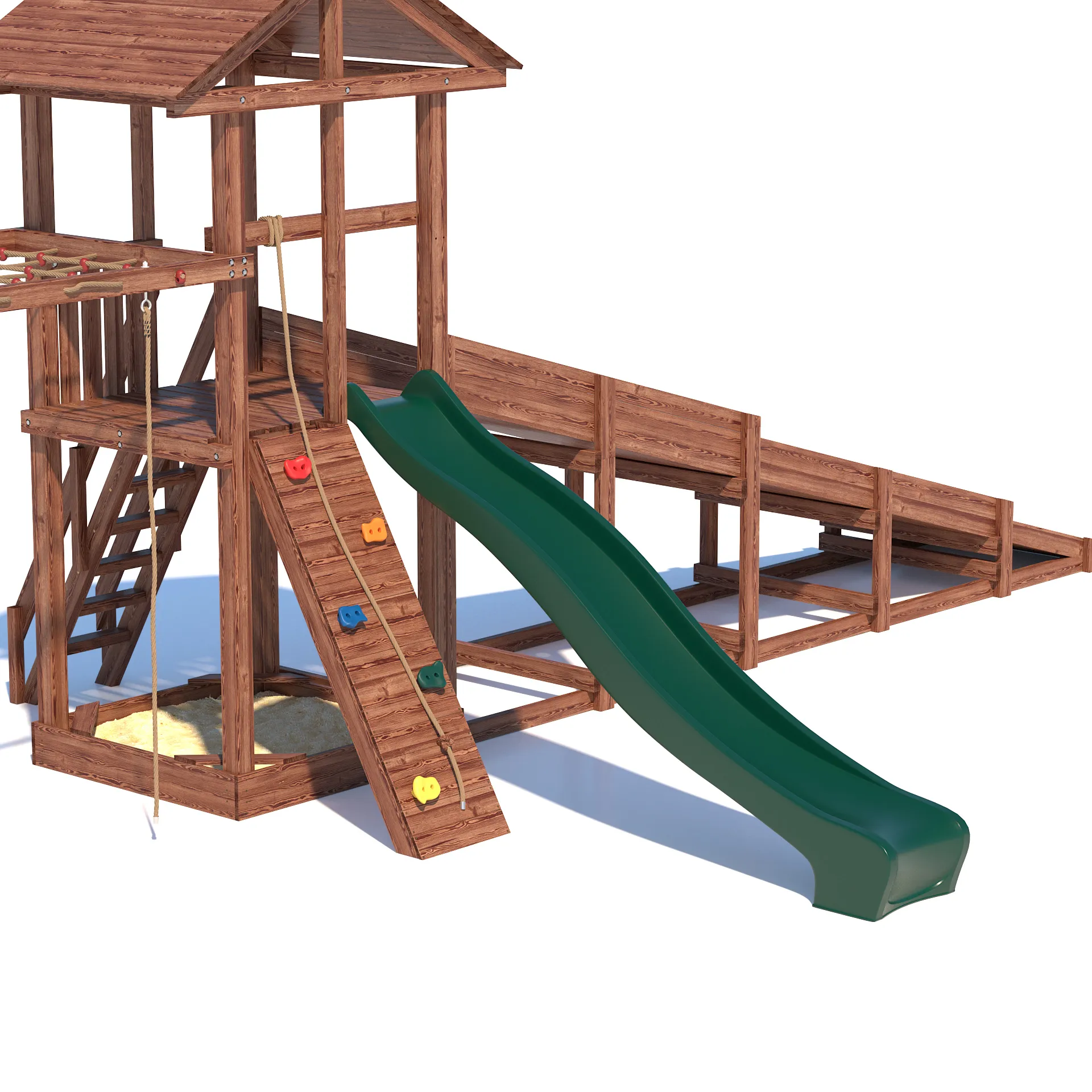 Детский всесезонный деревянный спортивный комплекс “All Season 4” - это идеальное решение для активного времяпровождения вашего ребенка на улице в любую погоду. Благодаря качественным материалам и продуманной конструкции, комплекс станет излюбленным местом для игр и занятий спортом ваших детей круглый год. Он включает в себя большую пластиковую горку с подключением к воде, уютную песочницу с сиденьями для малышей, гимнастическую секцию с сеткой-лазалкой, канатом, гимнастическими кольцами, турником и боксерской грушей, а так же зимний заливной скат длиной 5 метров!